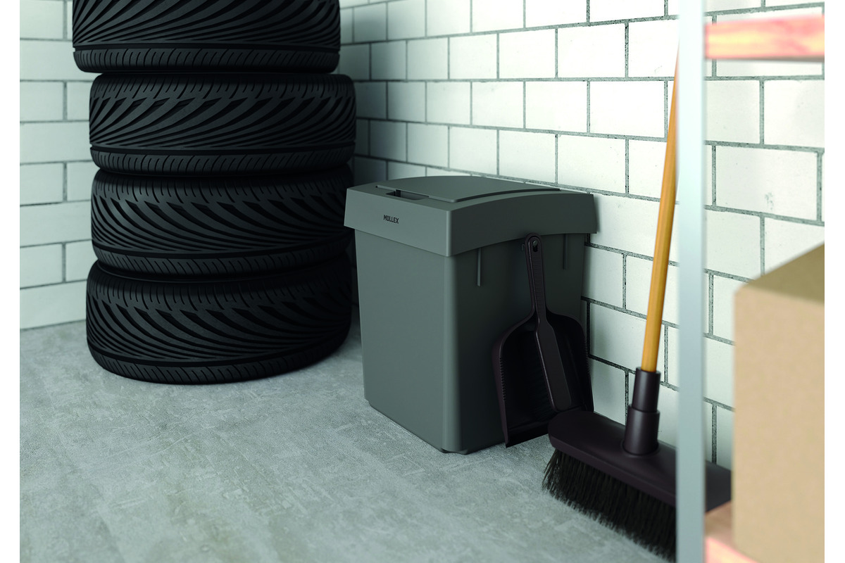 Kleinere Abfälle können schnell mittels Push-Funktion des Deckels reingeworfen werden.