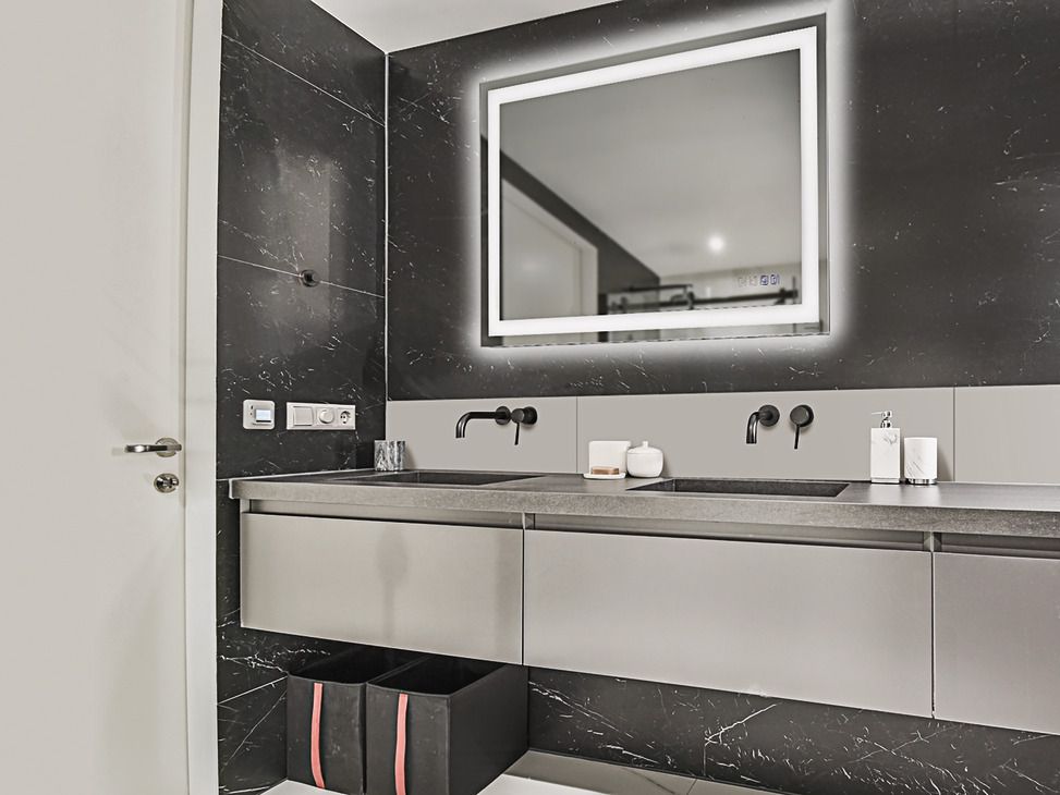 Einfache Montage der vorkonfigurierten Spiegeleinheit Flexibilität durch vertikale oder horizontale Montage, leicht zu reinigen durch integrierte Touch-Schalter in Spiegeloberfläche.