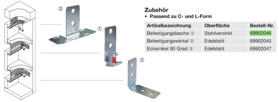 Befestigungswinkel für Grifflmuldenprofile L- und U Profile.