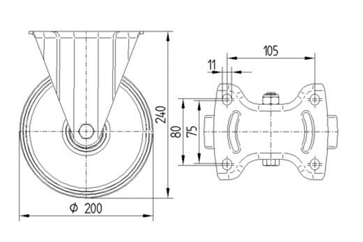 Laufrad- Durchmesser 200mm, Breite 50mm, Belastung 350kg, Bauhöhe 240mm