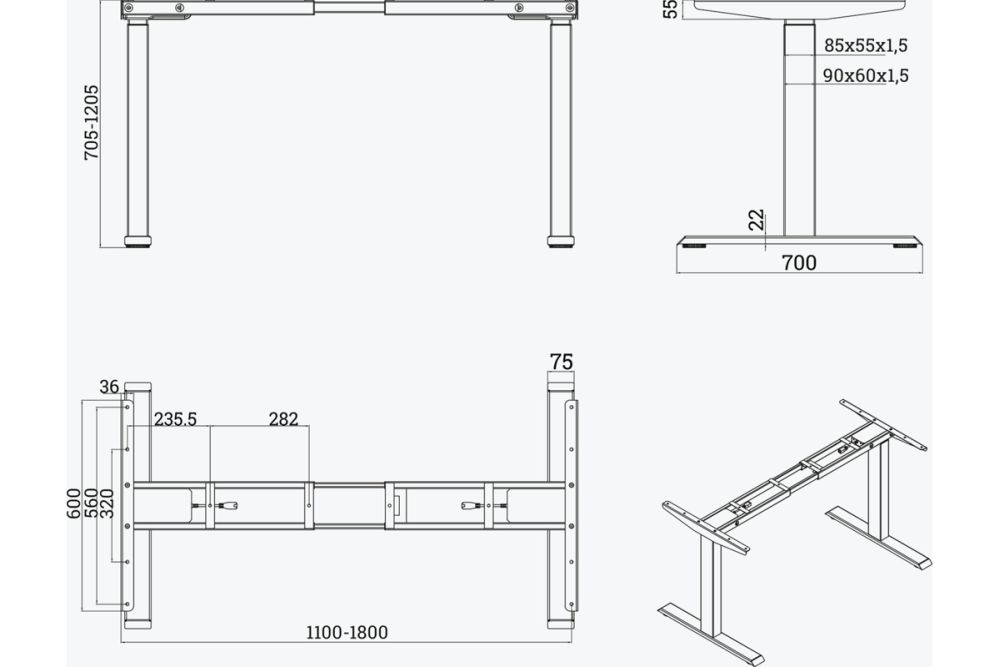 zweistufiges elektrisch höhenverstellbares Tischgestell, Auffahrschutz, statische Belastung bis 140 kg,