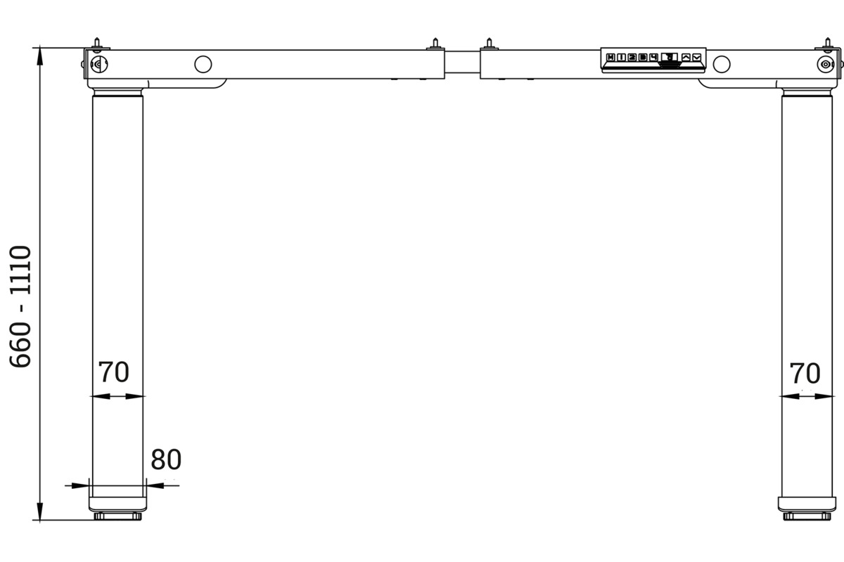 Elektrisch höhenverstellbares Tischgestell, Auffahrschutz, dynamische Belastung bis 450 kg, Hubgeschwindigkeit 17 mm/s. Handsteuerung: Eingangsspannung 220 - 240 V, inkl. Überlastungsschutz, max. 2 min on, 18 min off, energiesparend mit automatischer Abschaltung, Anzeige digital, 3 Speicherplätze, USB-A Ladefunktion. Inkl. Montageanleitung und Montagematerial, ohne Tischplatte.