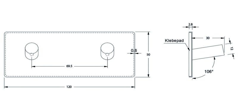 Garderobenhakenleiste Eisen Schwarz matt, mit 2 Haken zum Kleben