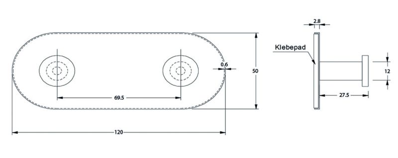 Garderobenhakenleiste Eisen Schwarz matt, mit 2 Haken zum Kleben
