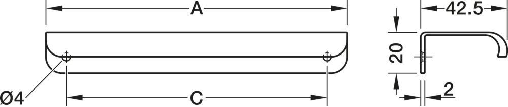 Maße: Bohrabstand (C) + 20mm = Gesamtlänge (A), bspw. BA 32mm = Gesamtlänge 52mm.