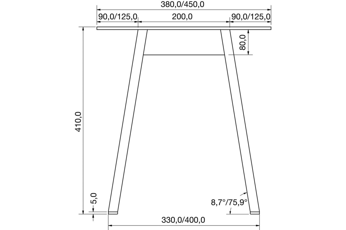 Kufen aus Stahl, Schwarz RAL 9005 lackiert für Tische und Sitzbänke, Profil 80x20mm.