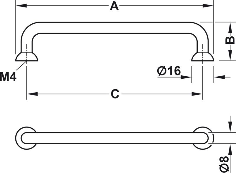 Maße: Bohrabstand + 16mm = Gesamtlänge, Höhe 28mm.