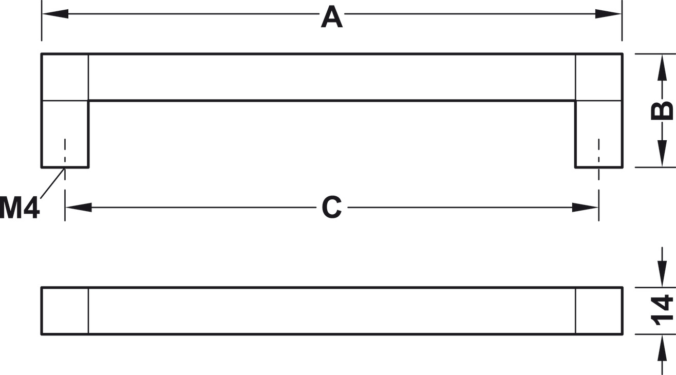 Maße: Bohrabstand + 14mm = Gesamtlänge, Höhe 34mm.