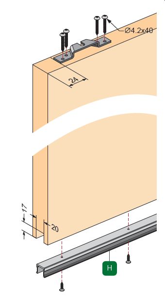 1 Blende (Höhe 65mm) für die Laufschiene.