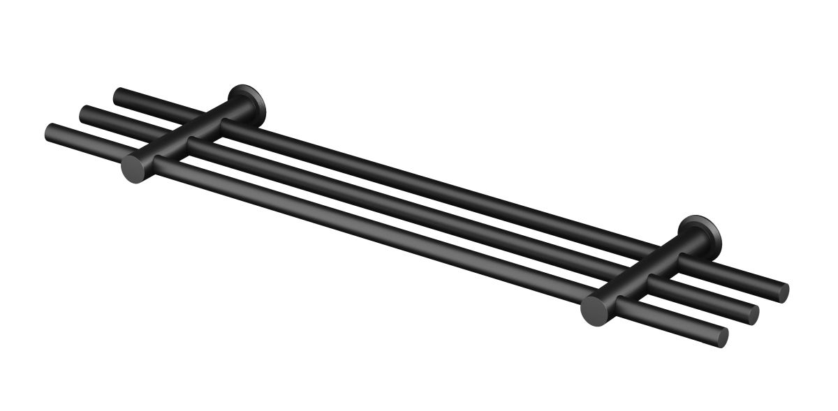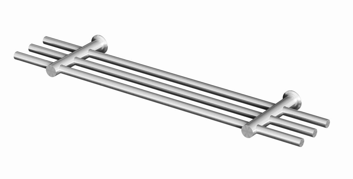 Ausladung 120mm, 3 Ablagestäbe Durchmesser 14mm, 2 Haltestäbe Durchmesser 22mm, inkl. Befestigungsmaterial. Länge 450mm = Bohrmaß 300mm, Länge 600mm = Bohrmaß 400mm, Länge 750mm = Bohrmaß 500mm. Maßfertigungen auf Anfrage.