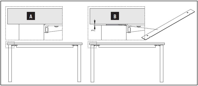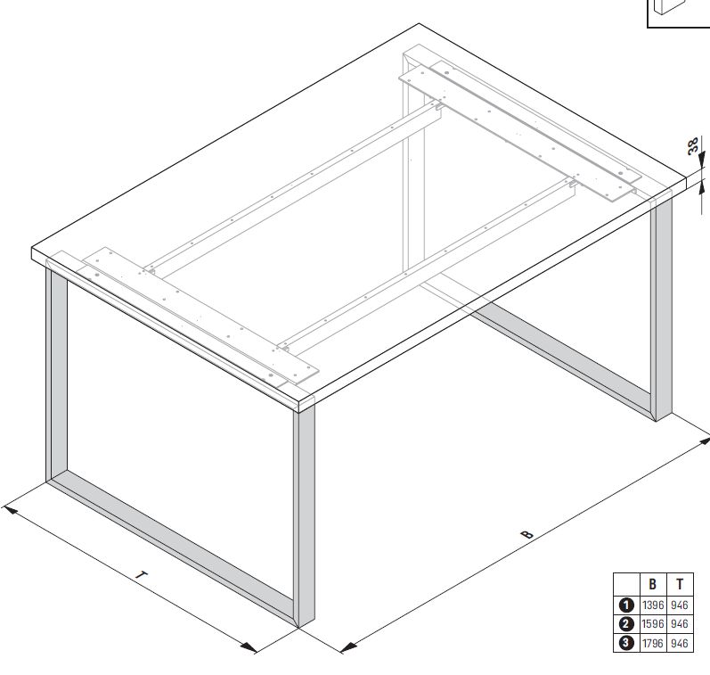 Lieferung ohne Tischplatte. Keine Höhenverstellung, Kufen unten mit Filzgleiter, inkl. Montagematerial.