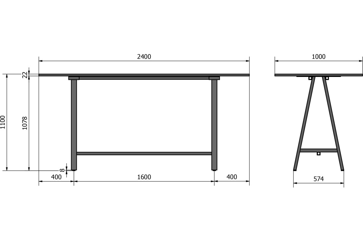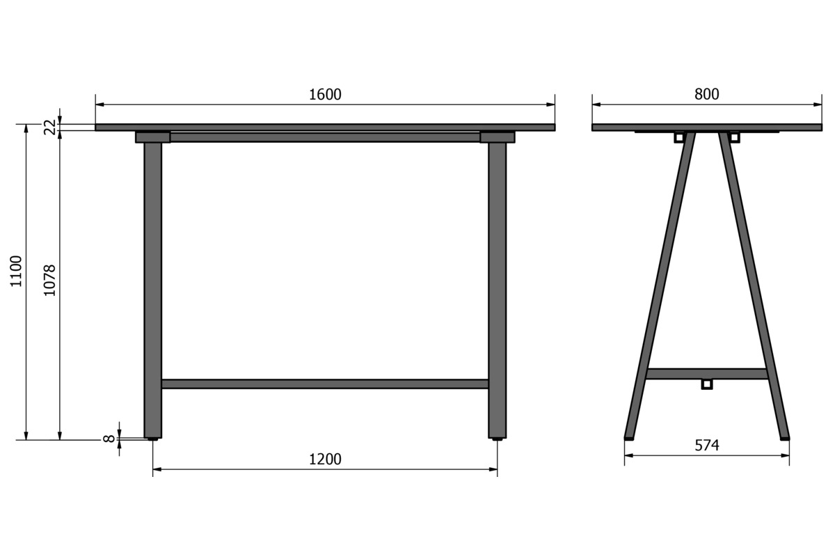 Tischgestell Schwarz (RAL9005) HÜBA Agile H, Höhe 1080mm