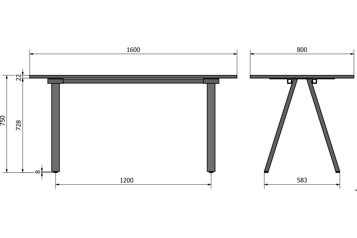 Tischgestell Schwarz (RAL9005) HÜBA Agile T, Höhe 730mm